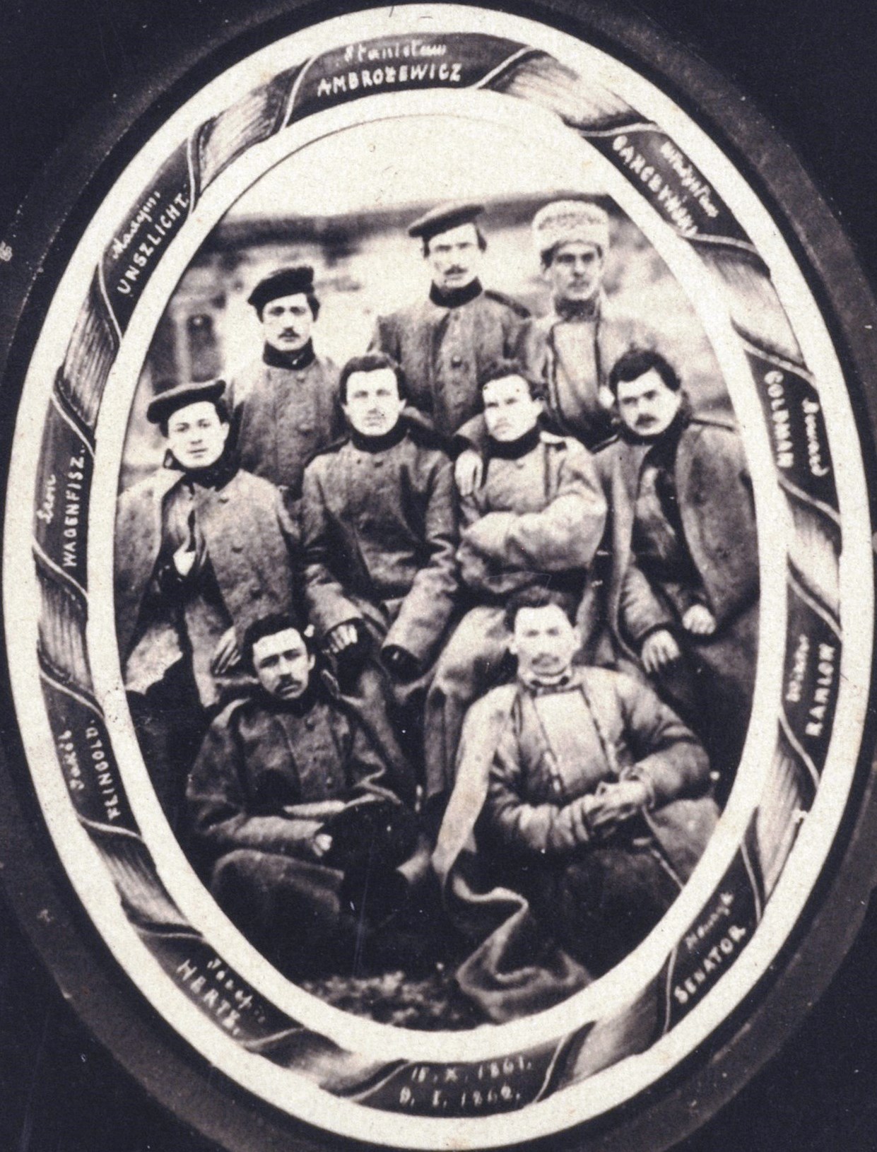 Zesłańcy aresztowani za udział w obchodach rocznicy śmierci Tadeusza Kościuszki. share Podziel się facebook google + twitter linkedin clipboard envelope print quote picture add × Cytowane źródła Cytowanie źródła on-line, czyli Internetowego Polskiego Słownika Biograficznego Zesłańcy aresztowani za udział w obchodach rocznicy śmierci Tadeusza Kościuszki., [online] Warszawa: Narodowy Instytut Audiowizualny [dostęp 13.04.2026]. Dostępny w internecie: http://www.ipsb.nina.gov.pl/a/foto/zeslancy-aresztowani-za-udzial-w-obchodach-rocznicy-smierci-tadeusza-kosciuszki Cytowanie wydania drukowanego, czyli Polskiego Słownika Biograficznego , Zesłańcy aresztowani za udział w obchodach rocznicy śmierci Tadeusza Kościuszki., [w:] Polski słownik biograficzny, t. , IPSBID: ipsb-fo-75518 × Wyślij link do strony E-mail odbiorcy wiadomości: To pole jest wymaganeWpisz poprawny adres e-mail Twój adres e-mail: To pole jest wymaganeWpisz poprawny adres e-mail Podgląd wiadomości, która zostanie wysłana: Witaj, [Tutaj podany Twój e-mail] poleca Ci treść z iPSB (internetowym Polskim Słowniku Biograficznym) Zesłańcy aresztowani za udział w obchodach rocznicy śmierci Tadeusza Kościuszki. × Dodaj do kolekcji wybierz kolekcję, do której chcesz dodać ten artykuł: lub wpisz nazwę nowej kolekcji, do której chcesz dodać ten artykuł: : To pole jest wymagane Dodaj do kolekcji Wybierz kolekcję Swoje kolekcje znajdziesz w profilu. Wystarczy kliknąć ikonę zębatego koła w górnym prawym rogu. Możesz je zobaczyć tu: moje kolekcje. × Dodaj do kolekcji Element został dodany do Twojej kolekcji. Swoje kolekcje możesz zobaczyć tu: moje kolekcje. × Dodaj do kolekcji Aby dodawać materiały do kolekcji musisz się zalogować. OPIS POSTACI POWIąZANE Fotografia zrobiona w latach 1861-1862. Widoczni są; Bernard Goldman, Henryk Senator, Józef Hertz, Władysław Garczyński, Jakub Feingold, Saladyn Wiktor Ramlow, Leon Wagenfisz, Maksymilian Maurycy Unszlicht, Stanisław Ambrożewicz. Postaci powiązane Bernard Goldman 1841-02-20 - 1901-03-23 polityk więcej >> Zobacz zdjęcie w najwyższej jakości Źródło
