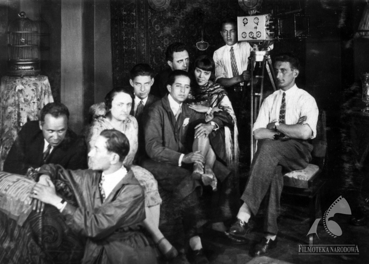 Na zdjęciu widoczni są: aktorka Nora Ney (trzecia z prawej), operator Seweryn Steinwurzel (z prawej), aktor Jerzy Marr (pośrodku z tyłu), reżyser Henryk Szaro (w środku), producent Maria Hirszbein (trzecia z lewej) oraz asystent reżysera Juliusz Gardan (drugi z lewej).